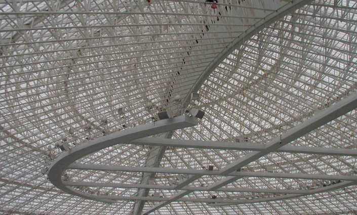 该网架加工武冈公司名目师表示,比来几年来国内能源根底设置装备摆设装备摆设建立步伐加快,包括核电站用钢、风电用钢、锅炉用钢架等,表现出历久需要茂密。铁路纽带运输本领已经发展成为纽带和纽带的一种趋势。诸如城市地铁、轻轨、城铁和高架桥等城市建筑用钢范围将会不休承继减少。在当下国内倡导的绿色低碳的可承继发展理念下,可摄取材料将会呈现网架化结构室第高速发展的卓越趋势。